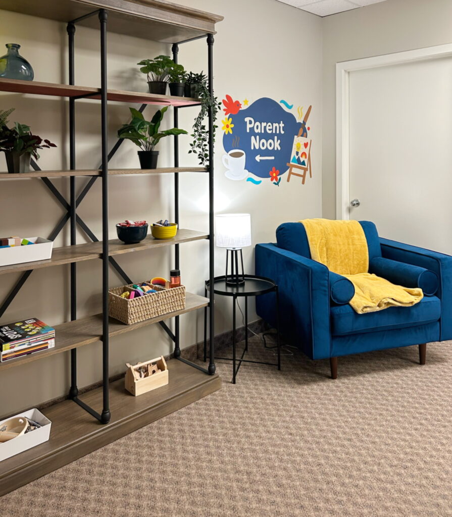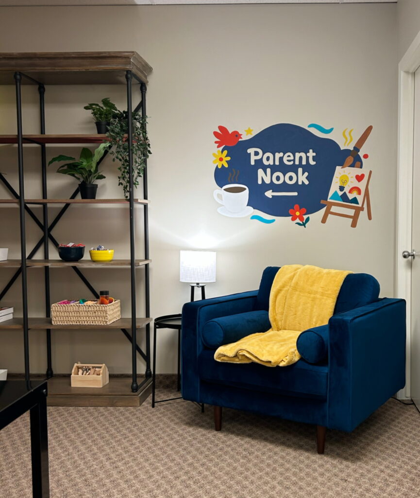 When Clarity Kids Health Group asked me to help create a special space for their clients’ parents, I jumped at the chance. The goal was to create a parents’ nook so that when parents were waiting for their kids to finish appointments or assessments, they had an area to work in or a quiet spot to take a breath.